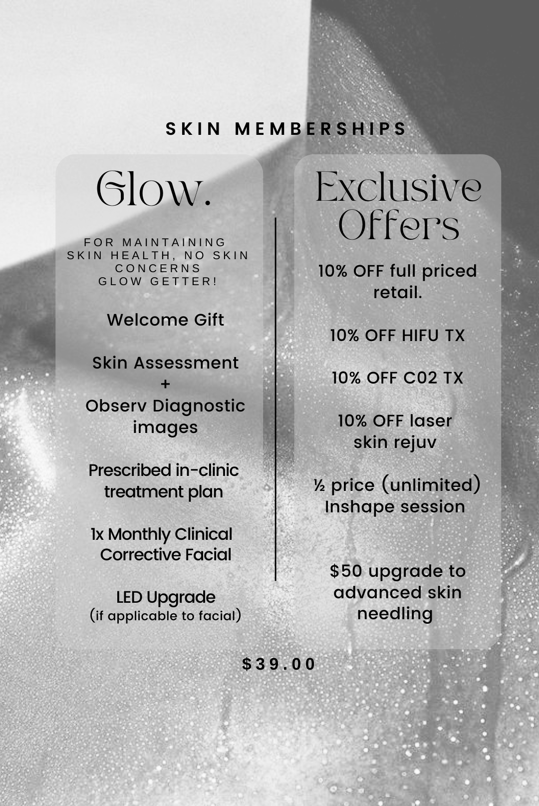 Glow Membership $39.00 pw includes: